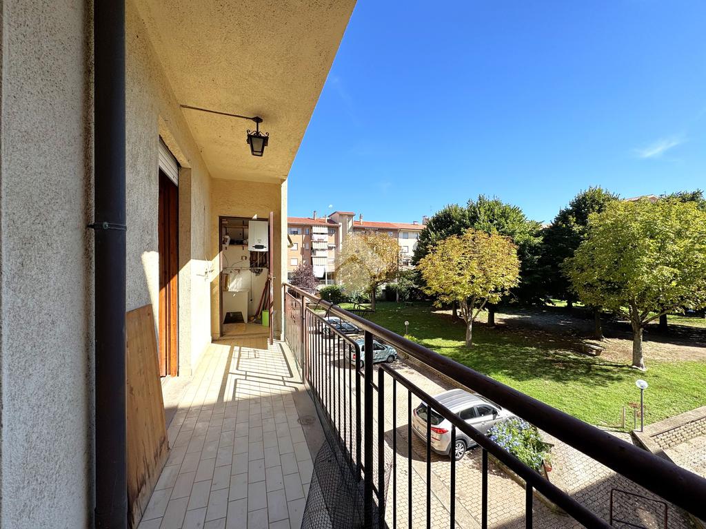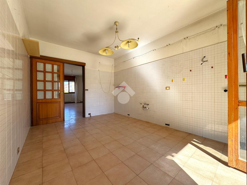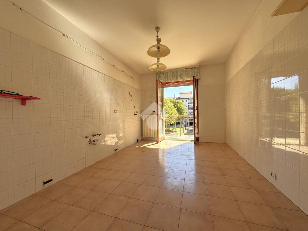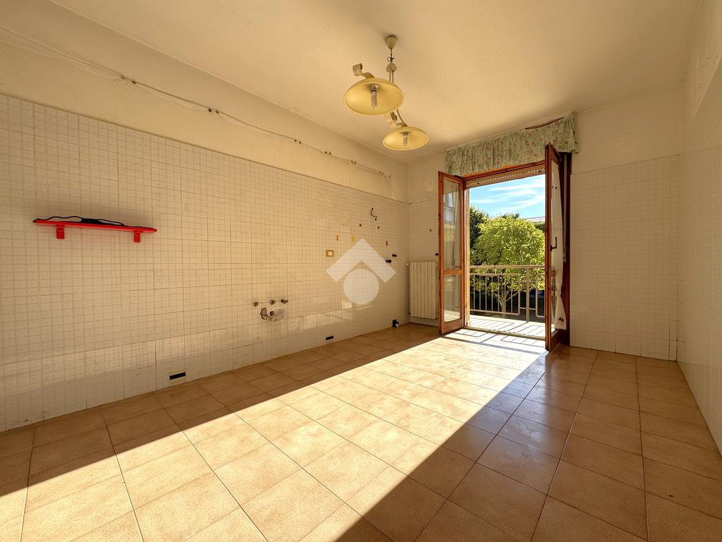 La zona giorno è composta da un ampio soggiorno molto luminoso grazie alla finestra e ad una porta finestra che conduce al primo balcone e una cucina abitabile con porta finestra sul secondo balcone dove troviamo anche una zona lavanderia e locale caldaia.