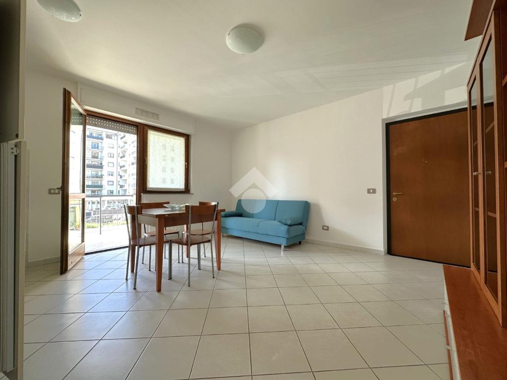 l'immobile offre un soggiorno open space con angolo cottura e con porta finestra che si apre sul terrazzo abitabile. La camera da letto è spaziosa e luminosa, mentre il bagno finestrato è dotato di una comoda vasca.