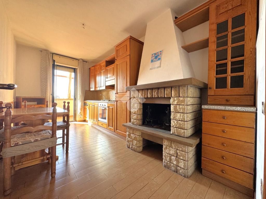 L'appartamento attualmente è composto da un ampio soggiorno dove troviamo una stufa a pellet idro, una cucina abitabile dove è presente un camino, un balcone ampio con vista panoramica, due bagni entrambi finestrati uno con box doccia mentre il secondo con vasca e due camere da letto.