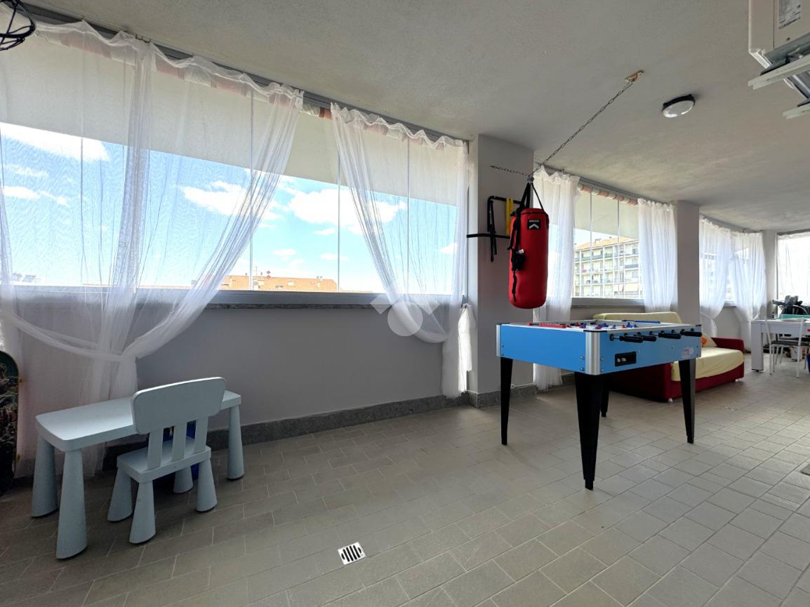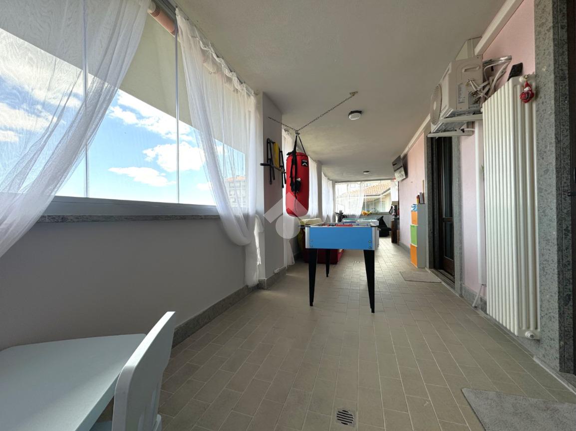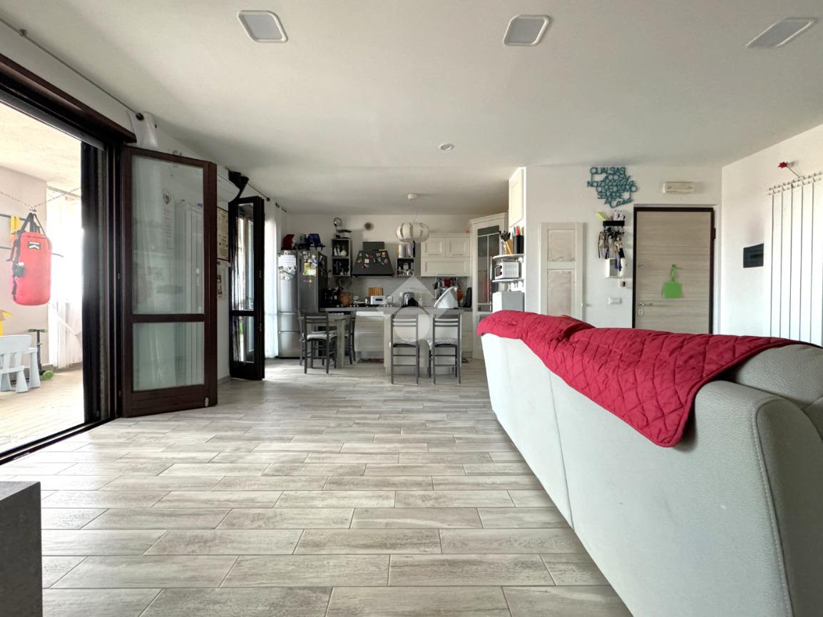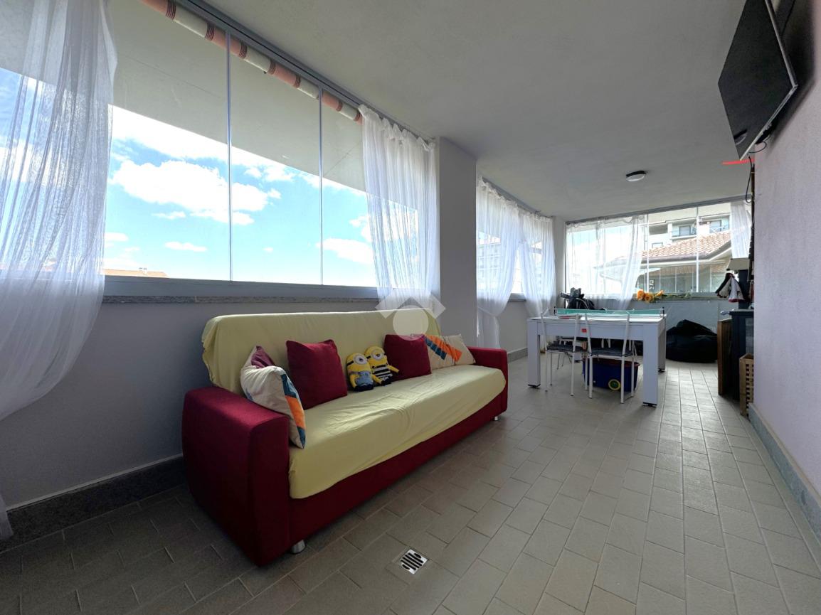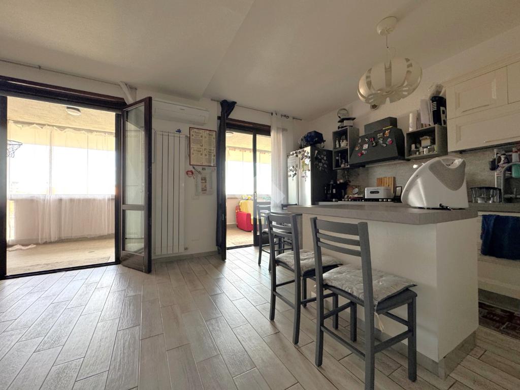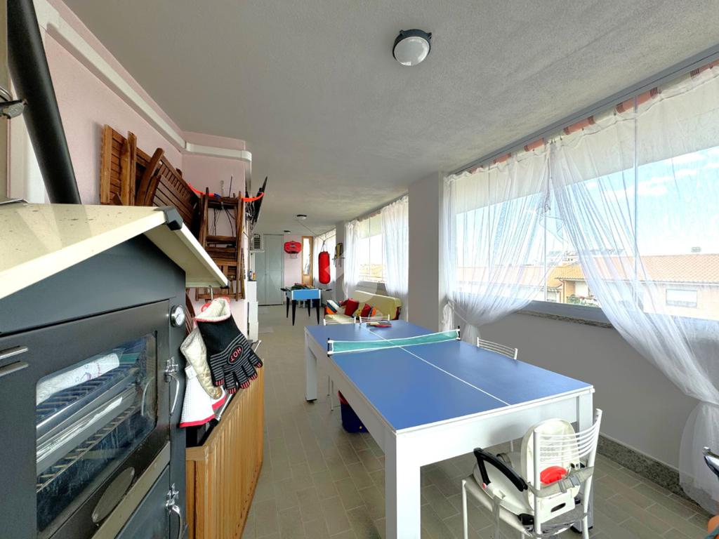 L'immobile è composto da un ampiuo soggiorno con cucina a vista e accesso al primo terrazzo di 40mq chiuso con vetrate autorizzate.