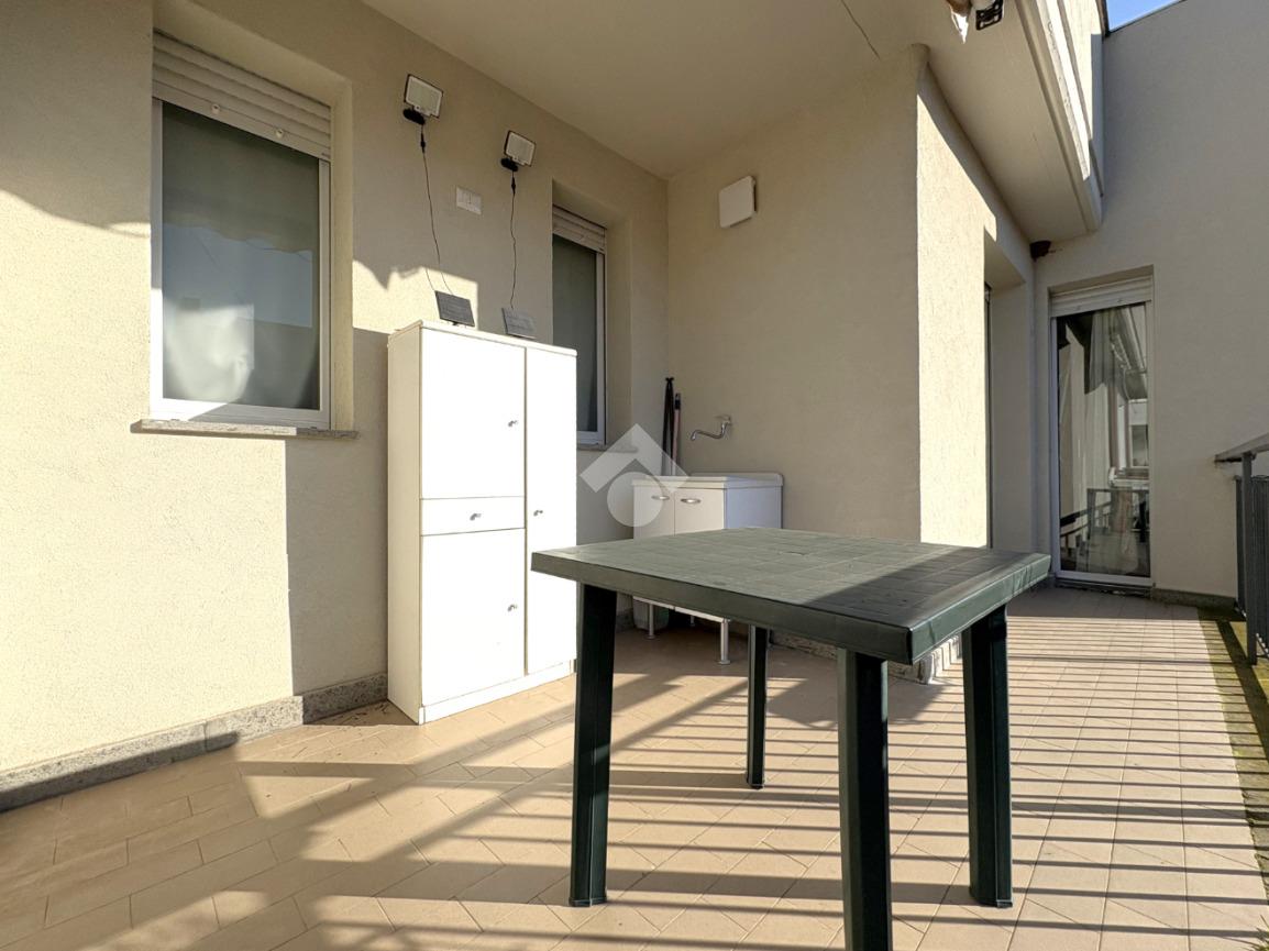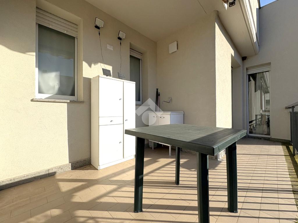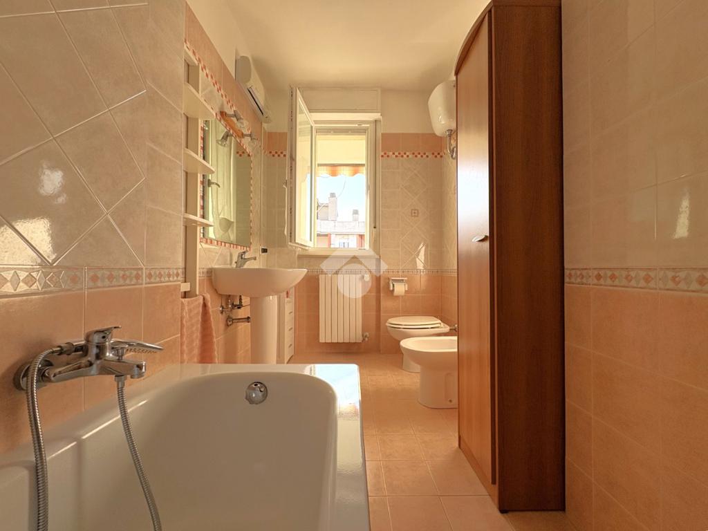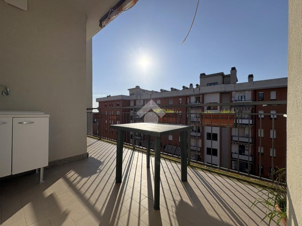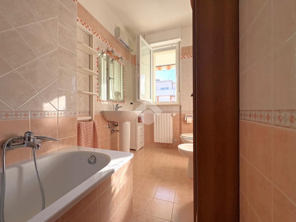 L'immobile è composto da soggiorno con open space con uscita sul comodo terrazzo, due camere e due bagni entrambi finestrati uno con box doccia mentre il secondo con vasca.